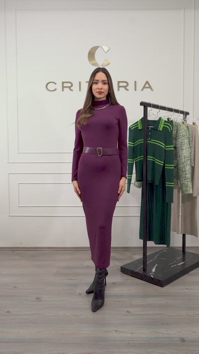 Vestido color Morado, entubado con cuello alto y cinturón desmontable